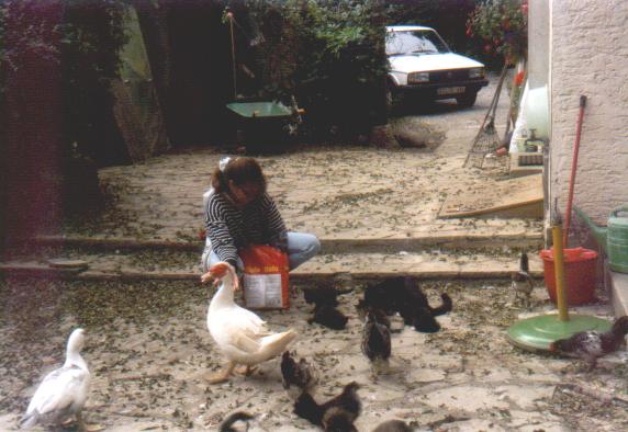 etwas zurück, da sie die Tiere sonst nicht füttert.
